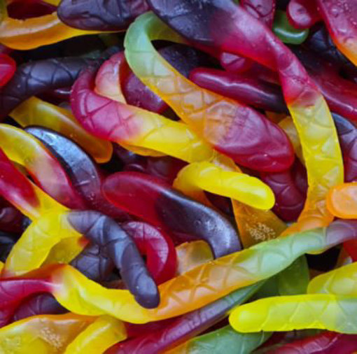 Enjoy a 1kg bag of Killer Pythons – giant, chewy, and fruity gummy snakes perfect for sharing. Available now at Wallies Lollies!
